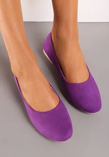 Fioletowe Klasyczne Balerinki z Ekozamszu z Okrągłym Noskiem Harneli