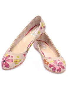 Goby Baleriny w kolorze kremowo-czerwono-żółtym ze wzorem