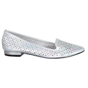 Modne, stylowe baleriny w unikalnym kolorze bieli wpadającej w perłowy, lśniący odcień to absolutne must have na nadchodzące lato. . . Niewysoki obcas dodaje im elegancji, a także pomaga uwydatnić nogę. Dzięki ażurowej budowie, buty zapewniają optymalną przewiewność nawet w upalne, letnie dni. Są bardzo lekkie i wygodne. Goodin Baleriny Z Efektem Holo szare.