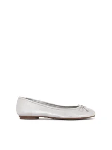 <p><strong>Baleriny</strong> to ponadczasowa klasyka w świecie obuwia damskiego. Wykonane z wysokiej jakości<strong> licowej skóry</strong> charakteryzują się płaską podeszwą, co zapewnia wygodę i styl. Ich srebrny odcień przyciąga uwagę, a zaokrąglony nosek dodaje im uroku i subtelności. Ozdobna kokardka umieszczona na przodzie balerin nadaje im dziewczęcego wdzięku i elegancji. Doskonale pasują zarówno do casualowych, jak i bardziej eleganckich stylizacji.