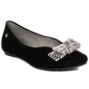Maciejka Baleriny damskie skórzane z kokardą Czarne Baleriny Maciejka w klasycznej czerni to eleganckie i wygodne obuwie dla kobiet ceniących styl i komfort. Wierzch wykonany z wysokiej jakości skóry welurowej, a wnętrze oraz wkładka z naturalnej skóry zapewniają miękkość i odpowiednią wentylację stopy. Migdałowy nosek i subtelna kokarda dodają butom kobiecego uroku. Płaska podeszwa z wysokogatunkowego tworzywa gwarantuje stabilność i wygodę podczas noszenia. To idealne baleriny zarówno na co dzień, jak i na specjalne okazje.