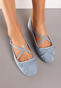 Niebieskie Balerinki z Ozdobnymi Paskami na Sprzączkę i Kokardką Zrisa