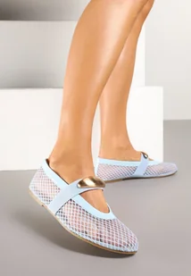 Niebieskie Balerinki z Transparentnej Siateczki z Paskiem i Metaliczną Aplikacją Isorine