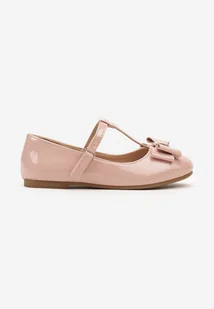 Różowe Lakierowane Balerinki z Paseczkami na Rzep i Kokardką Quiremia