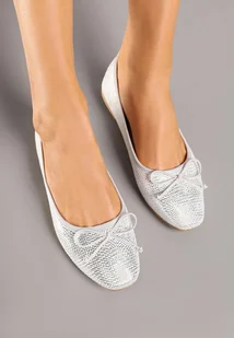 Srebrne Balerinki Vices z Kokardką i Tłoczeniem Imitującym Skórę Węża Mirtewi