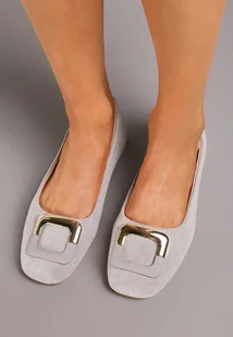 Szare Płaskie Klasyczne Balerinki z Ozdobną Klamrą Nassnema