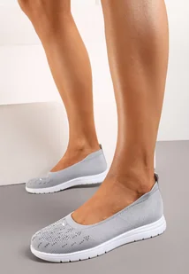 Szare Wsuwane Balerinki na Płaskiej Podeszwie Zdobione Imitacją Cyrkonii Foviana