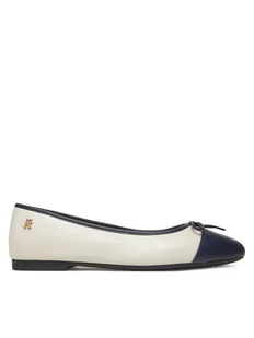 Tommy Hilfiger Baleriny Toe Cap Leather Ballerina FW0FW08759 Écru