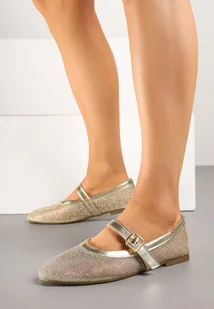 Złote Balerinki Siateczkowe Vices z Metalicznym Połyskiem i Paskiem z Klamrą Kolanissa