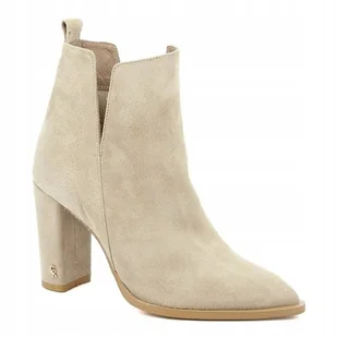 Beżowe Botki Carinii B8991-O17 Skóra Zamszowa Słupek Eleganckie Modne R.39