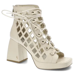 Beżowe ażurowe botki Carinii B5401-654 koturn skóra nubuk r.39