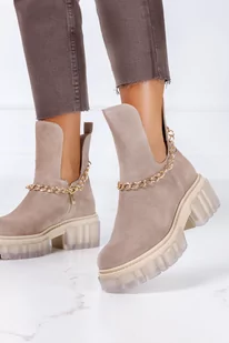 Beżowe botki na platformie z łańcuszkiem POLSKA SKÓRA Casu 30065-41