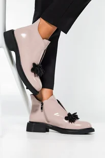 Beżowe botki skórzane damskie lakierowane na ozdobnej podeszwie ozdoba z koralików Casu SL24X7-N-40