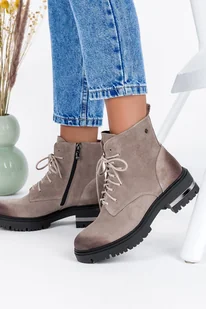 Beżowe botki skórzane na platformie damskie trapery sznurowane PRODUKT POLSKI Casu 60273-37