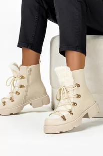 Beżowe botki śniegowce damskie z kożuszkiem sznurowane Casu 22-15-40