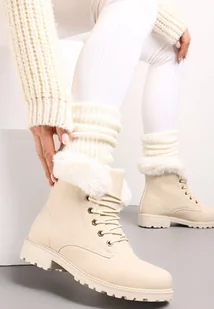 Beżowe Ocieplone Botki Trapery z Futerkiem Wokół Cholewki Atuval