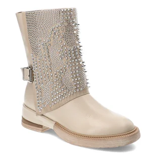 Beżowe Stylowe Botki Alma en Pena Damskie Buty Z Ćwiekami