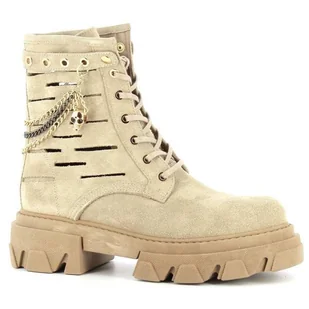 BEŻOWE ZAMSZOWE WORKERY DAMSKIE NA PLATFORMIE Z ŁAŃCUSZKAMI