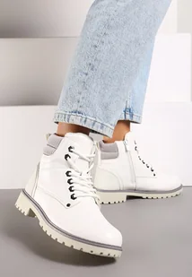 Białe Płaskie Klasyczne Traperki ze Sznurowaniem Lobanne