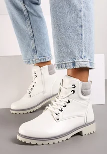 Białe Sznurowane Casualowe Traperki na Płaskiej Podeszwie Relobia
