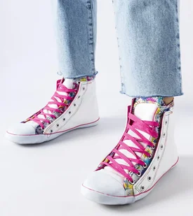 Białe trampki za kostkę w kwiaty Marphisa są idealne dla młodego pokolenia. Mają okrągły nosek i są zdobione wzorem kwiatowym, co nadaje im letni i trendy wy...