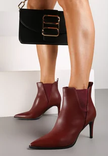 Bordowe Botki na Szpilce z Noskiem w Szpic i Elastycznymi Wstawkami Omelia