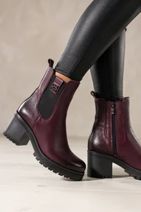 Bordowe botki skórzane damskie bieżnikowany obcas i platforma guma w cholewce stalowa ozdoba PRODUKT POLSKI Casu 39505