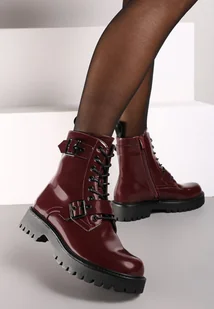 Bordowe Botki Workery na Platformie ze Sznurowaniem Ixuelli