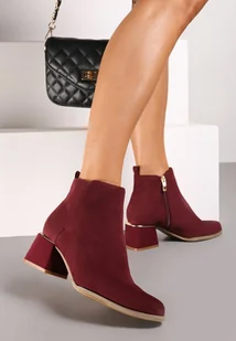 Bordowe Botki z Ekozamszu na Niskim Obcasie Zdobionym Metaliczną Wstawką Brievia