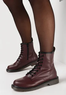 Bordowo-Czerwone Botki Workery za Kostkę Chiaras