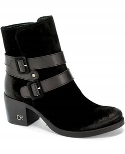Carinii B5582-H20 botki czarne damskie klocek skóra naturalna zamszowa r.37