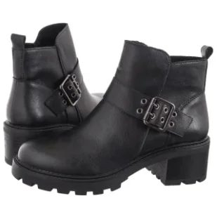 Czarne botki damskie Sergio Leone na szerokim klocku ozdobne paski z nitami YG74724