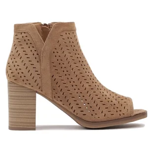 Botki Damskie Ażurowe Modne Stylowe Eleganckie Klasyczne Skórzane Na Słupku Na Obcasie Khaki Melin 40