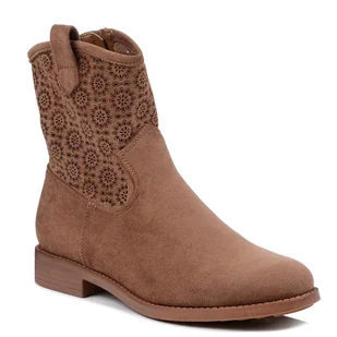 Botki damskie S.Barski brązowe z ażurową cholewką Stylowe i wygodne botki damskie S.Barski w kolorze jasnego brązu to świetny wybór na co dzień. Dzięki ażu...