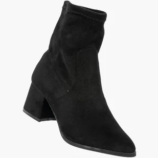 miękka tkanina zamszopodobna o przyjemnej fakturze Wnętrze: delikatnie ocieplane, zapewniające komfort termiczny Rodzaj obcasa: stabilny słupek gwarantujący wygodę noszenia Czubek: smukły, lekko zaostrzony dla eleganckiego efektu Podeszwa: antypoślizgowa dla pewnego kroku Zapięcie: