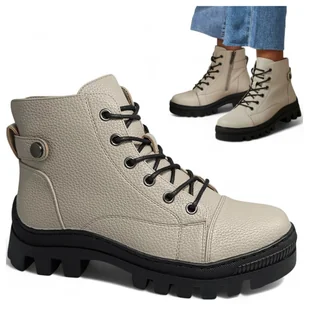 Botki Damskie jesienne z zamkiem delikatnie ocieplane Potocki Beżowe/Szare/Khaki 37 _________________Potocki®________________ Kolekcja polskiego producenta, ...