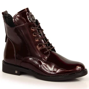 Botki damskie lakierowane ocieplane bordowe Potocki bordowy czerwone - POTOCKI