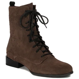 Botki damskie Maciejka skórzane brązowe Płaskie botki, trzewiki damskie polskiej marki Maciejka to uwielbiany typ obuwia przez wiele Pań bez względu na wiek. Prezentowane obuwie spełni oczekiwania najbardziej wymagających klientek bowiem są lekkie, wygodne i bardzo komfortowe. Wykonane zostały z najlepszej jakości skóry naturalnej welurowej w kolorze brązowym. Wnętrze jest ocieplone polarem, a wkładka wykonana jest z miękkiej z tkaniny. Dzięki wiązaniu możemy dostosować idealnie obuwie do stopy, a wszyty po wewnętrznej stronie zamek błyskawiczny ułatwi nam zakładanie i zdejmowanie obuwia.