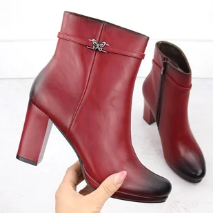 Botki damskie na słupku ocieplane czerwone M.Daszyński AF125-22 - M. DASZYŃSKI