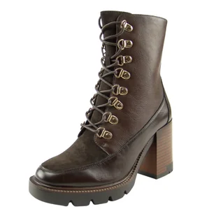 Płeć: Damskie, Kolor: Brązowy, Wysokość: Wysokie, Materiał: Skóra ekologiczna, Rodzaj zapięcia: Sznurowadła, Dodatkowe informacje: