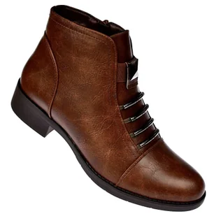 Modny brązowy kolor sprawia, że trzewiki doskonale komponują się z wieloma stylizacjami – od casualowych zestawów z jeansami po eleganckie outfity z płaszczem czy sukienką. To uniwersalne botki, które łączą w sobie styl, wygodę i funkcjonalność. Specyfikacja produktu: Kolor: brązowy Materiał cholewki: skóra ekologiczna licowa Wnętrze: