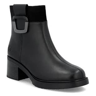 Botki damskie ocieplane czarne Rieker Y5253 zimowe skórzane na obcasie-38