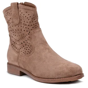 Botki damskie płaskie jesienne ażurowe na suwak coffee S.Barski 42-135-37