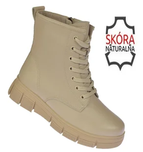 Botki damskie Skotnicki B-3-1378 – beżowe skórzane trzewiki zimowe na platformie. Eleganckie i wygodne botki damskie Skotnicki B-3-1378 to idealny wybór na chłodne dni. Wykonane ze skóry naturalnej w kolorze beżowym oraz ocieplone miękkim futerkiem, zapewniają komfort noszenia i skuteczną ochronę przed zimnem. Dzięki sznurowaniu i praktycznemu suwakowi z boku, buty łatwo się zakłada i zdejmuje, a jednocześnie idealnie dopasowują się do kształtu stopy. To połączenie funkcjonalności i nowoczesnego designu.