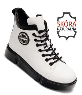 Botki damskie skórzane białe B-3-212 – wygodne trzewiki na jesień i zimę Stylowe botki damskie skórzane białe B-3-212 to idealny wybór dla kobiet ceniących elegancję i wygodę w codziennym użytkowaniu. Wykonane w całości z naturalnej skóry licowej, zapewniają najwyższą trwałość, odporność na uszkodzenia. To obuwie rekreacyjne, które świetnie sprawdzi się zarówno w miejskich stylizacjach, jak i w bardziej casualowych zestawieniach. Dzięki podwyższonej cholewce buty chronią stopę przed chłodem i wilgocią, a lekko ocieplone wnętrze z futra syntetycznego zapewnia komfort nawet w zimowe dni. Wkładka z miękkiego PU i futra syntetycznego dodatkowo podnosi wygodę noszenia, idealnie dopasowując się do kształtu stopy.