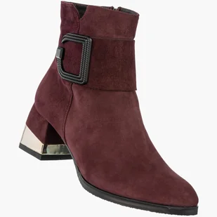 Eleganckie botki damskie Lovsoka w kolorze głębokiego bordo to idealne połączenie stylu, wygody i klasy. Wykonane z naturalnej skóry zamszowej, wyróżniają się oryginalnym zdobieniem w postaci ozdobnej klamry oraz metalicznego akcentu na obcasie. Dzięki ciepłemu ociepleniu i stabilnej konstrukcji zapewniają komfort noszenia przez cały dzień, będąc doskonałym wyborem zarówno do eleganckich, jak i codziennych stylizacji.