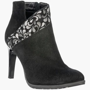Botki Damskie Skórzane Buty Na Obcasie Ocieplane Zimowe Czarne Darex B267/1 Czarny 38 Eleganckie czarne botki damskie Darex to wyjątkowe połączenie stylu, komfortu i kobiecego wdzięku. Wykonane z naturalnej skóry z subtelnym ociepleniem, doskonale sprawdzą się w chłodniejsze dni, zapewniając ciepło i wygodę. Ozdobny wzór w górnej części cholewki dodaje im niepowtarzalnego charakteru, a smukła szpilka pięknie wysmukla sylwetkę. PARAMETRY I NAJWAŻNIEJSZE INFORMACJE: Kolor: klasyczny czarny z ozdobnym motywem Materiał zewnętrzny: