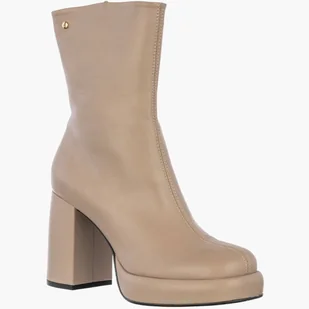 Botki Damskie Skórzane Buty Na Słupku Ocieplane Zimowe Beżowe Simen 6443A Beżowy 40