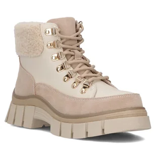 Botki damskie skórzane na platformie ocieplane beżowe Filippo DBT6471-36