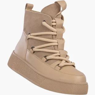 Botki Damskie Skórzane Ocieplane Buty Na Zimę Na Platformie Beżowe Cambell Beżowy 37 Te skórzane botki damskie Cambell zachwycają nowoczesnym stylem, który doskonale łączy modny design z najwyższą wygodą na co dzień. Ocieplana wyściółka, solidna cholewka i efektowne sznurowanie tworzą idealne zimowe obuwie dla kobiet ceniących komfort oraz funkcjonalność. Te modne, beżowe buty zimowe świetnie wpiszą się w wiele stylizacji, oferując trwałość, stabilność i atrakcyjny look. PARAMETRY I NAJWAŻNIEJSZE INFORMACJE: Skórzana cholewka zapewniająca trwałość i odporność na zimowe warunki Ocieplone wnętrze gwarantujące wysoki komfort termiczny Gruba, stabilna podeszwa zwiększająca przyczepność i bezpieczeństwo Efektowne wiązanie z metalowymi oczkami podkreślające dynamiczny charakter Boczny zamek ułatwiający szybkie zakładanie i zdejmowanie Wysoka cholewka chroniąca przed chłodem i wilgocią Miękka wkładka dająca komfort podczas długiego użytkowania Uniwersalny beżowy kolor pasujący do wielu jesienno-zimowych stylizacji ROZMIARÓWKA: